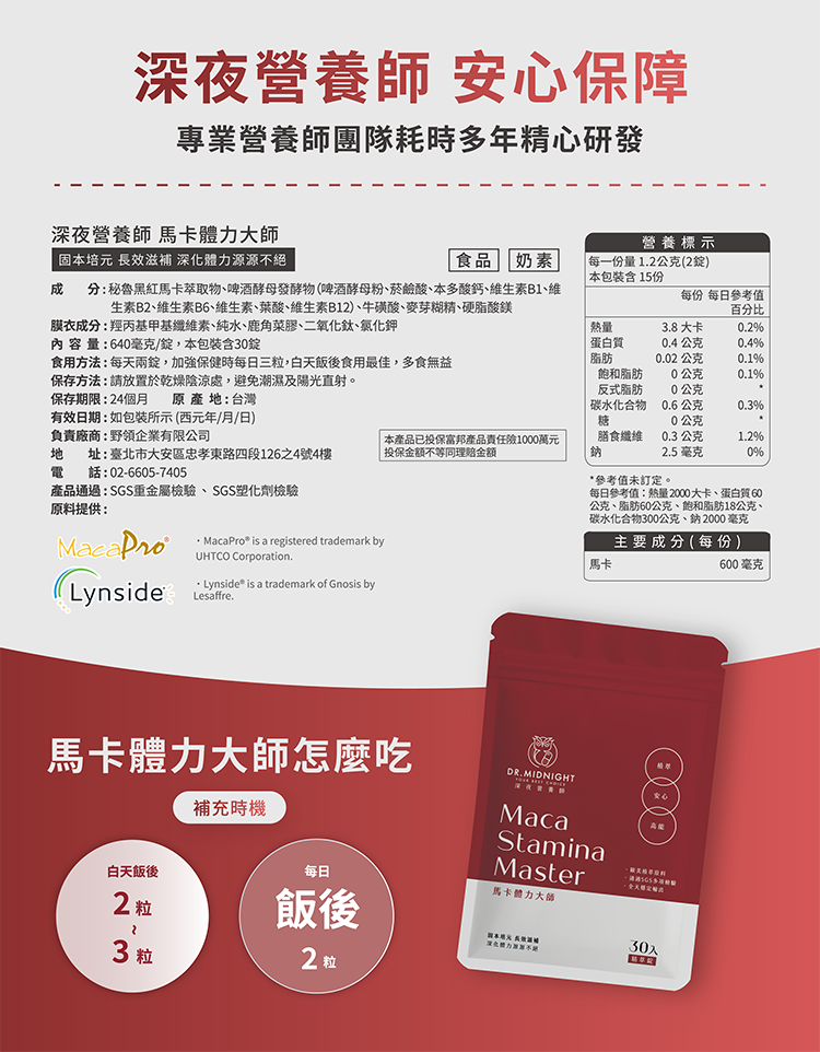 🏅 超高濃度6:1濃縮萃取,每份瑪卡高達3600mg!