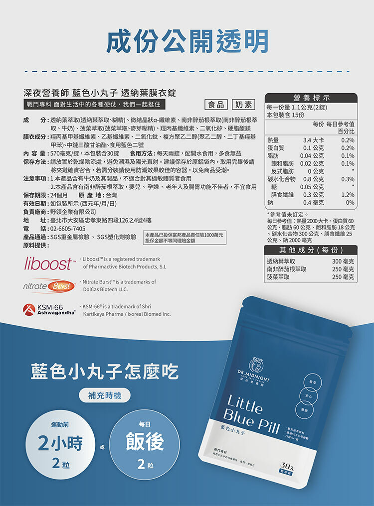 【深夜營養師|藍色小丸子 透納葉膜衣錠】