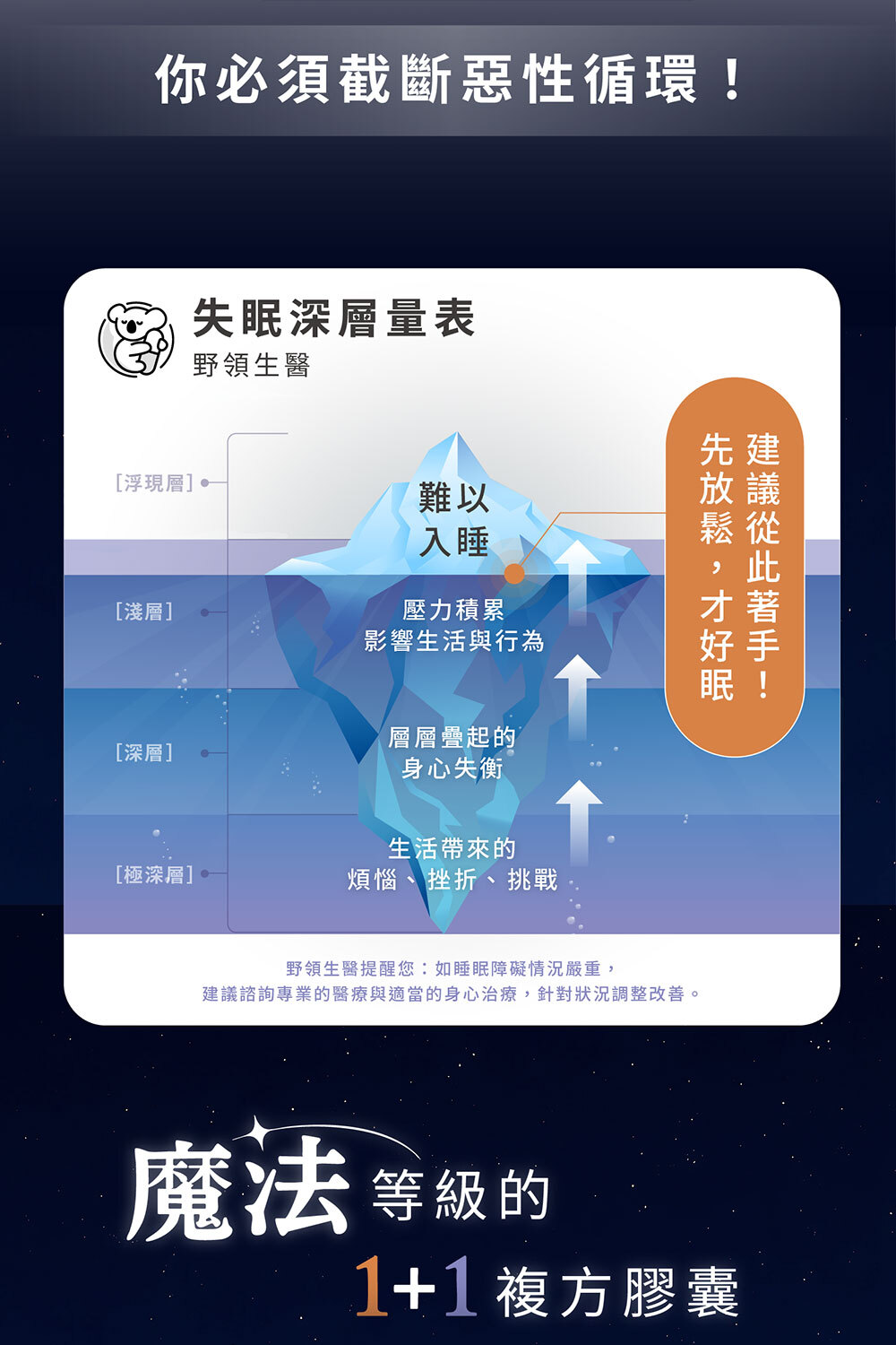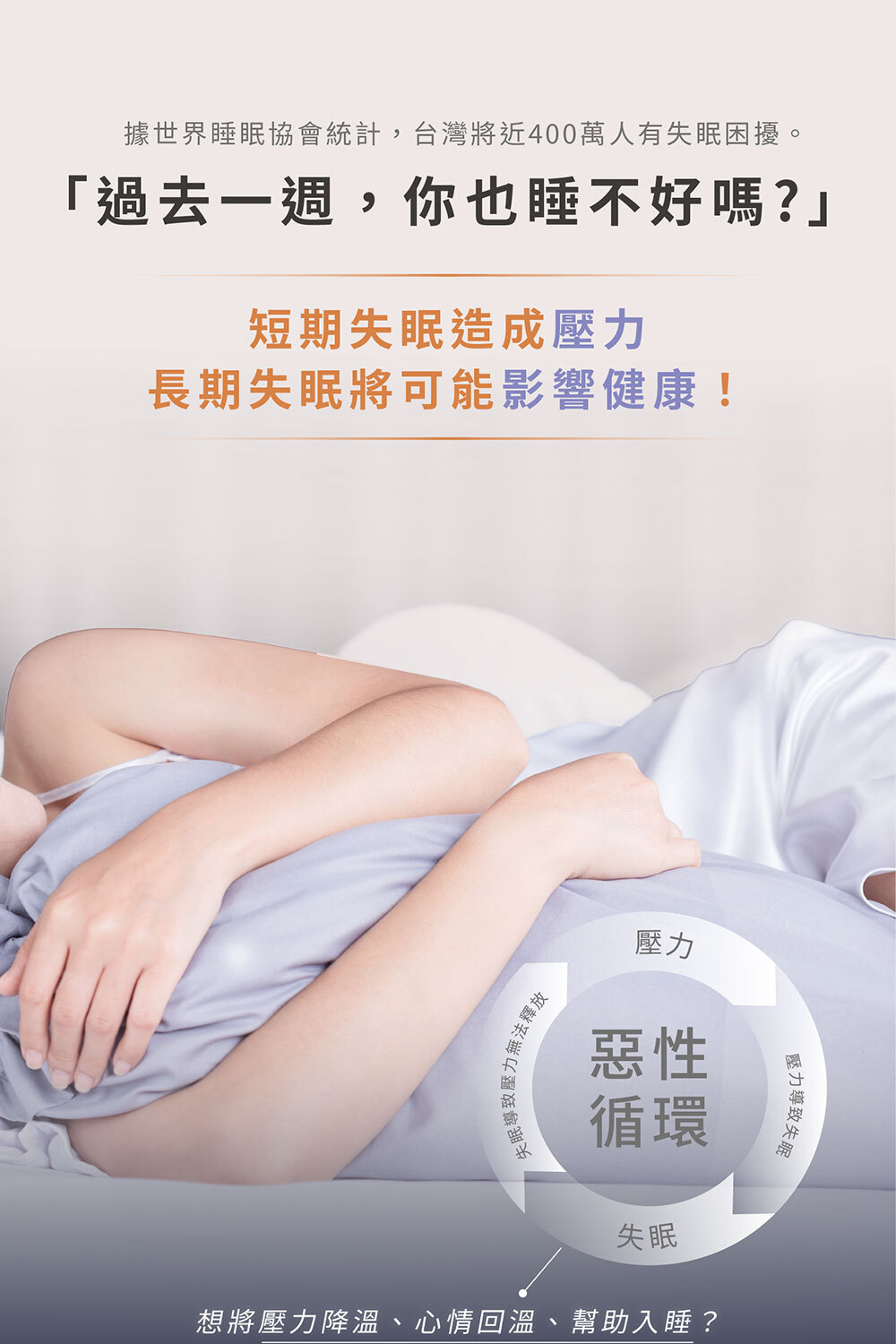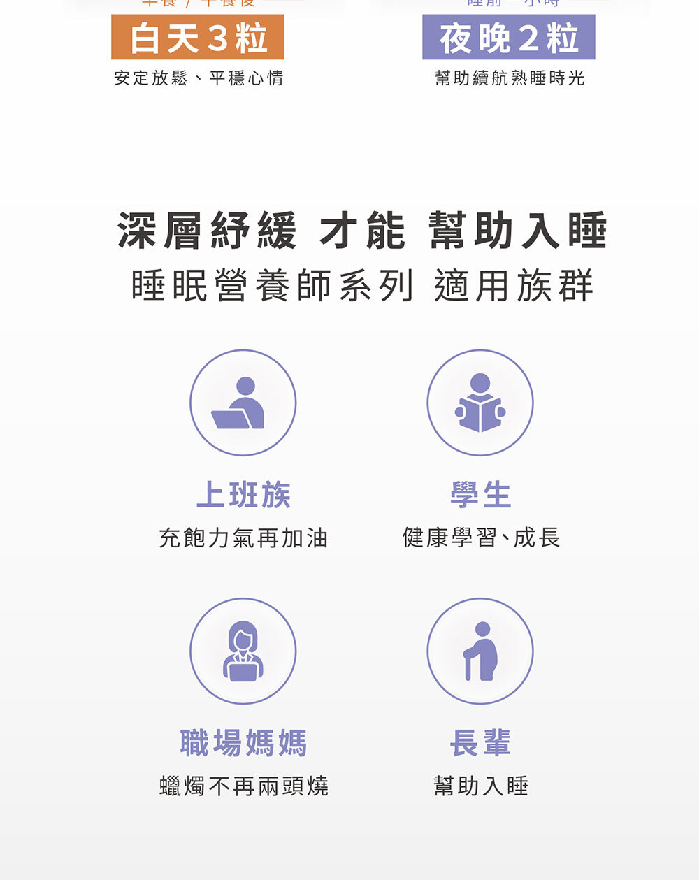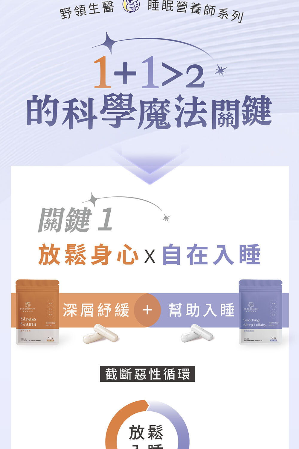 1️⃣ 截斷惡性循環:放鬆身心 + 自在入睡,讓緊繃白天順利銜接安穩夜晚。