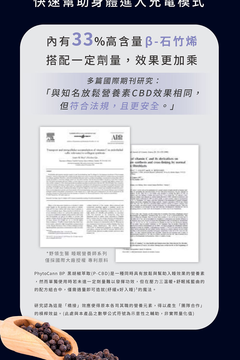 搭配澳洲黑胡椒萃取(33% 高含量 β-石竹烯),加乘營養吸收與協同效益。