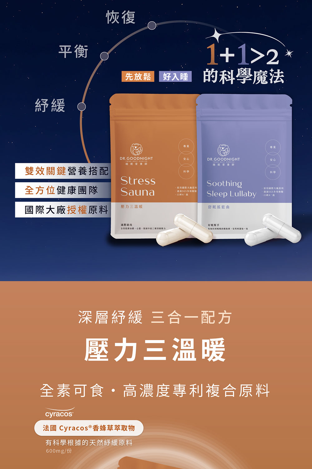 從放鬆、平衡到自然入睡,三重關鍵組合幫助你輕鬆進入高品質睡眠。
